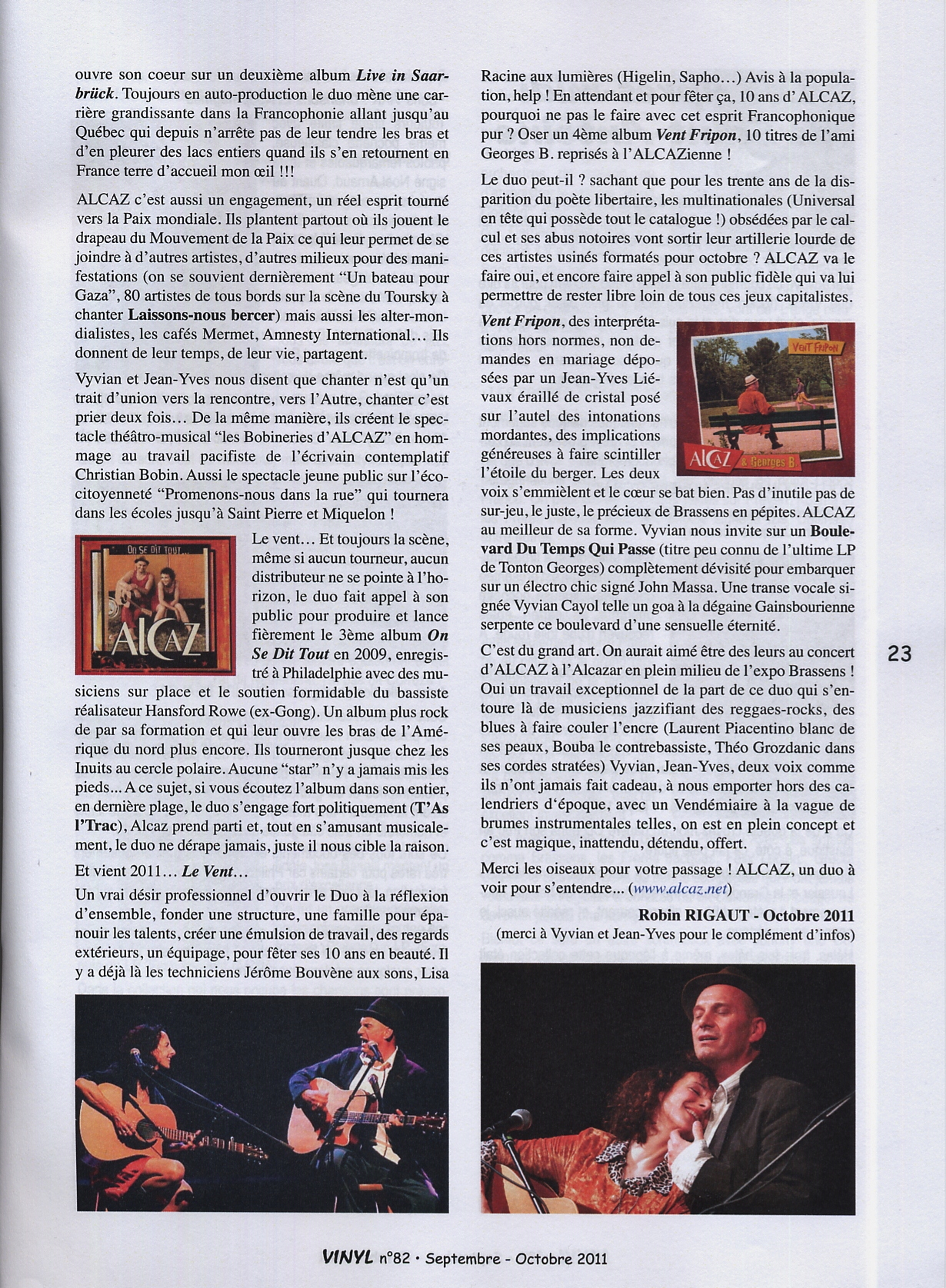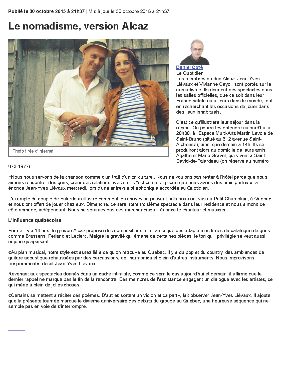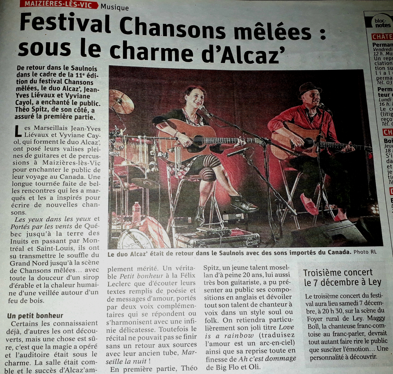 Un voyage dans le temps avec des airs ré-inventées… Une soirée mémorables… de nouvelles rencontres …des odeurs …une atmospheres theatrale… Un p’tit Bonheur réinventé que j’aime enfin de Félix a Brassens en passant pas ALCAZ un voyage en chansons Francaise en passant par Limoilou bien entendu !